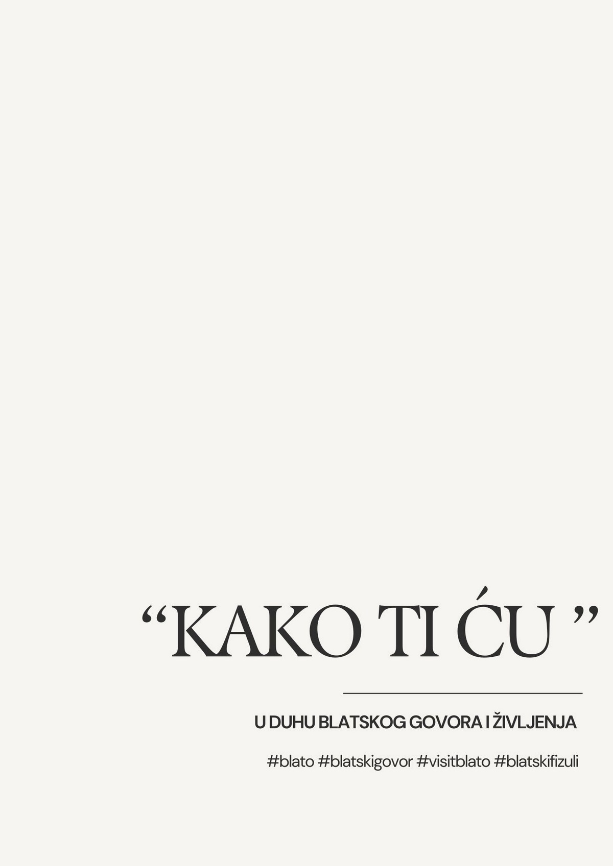 Naša tematska gastro manifestacija, osmišljena kao tradicijsko događanje s ciljem dodatne promocije tradicionalnih proizvoda rađenih po izvornim recepturama, ali i svi ostali proizvodi temeljeni na poštivanju tradicije, prenesenih znanja, vještina i iskustva naših predaka za vrijeme kojih mnogobrojni domaći i strani posjetitelji mogu uživati i degustirati tradicionalne kulinarske delicije i autohtone slastice uz neizostavna vrhunska otočna vina, i sve to uz jedinstvenu prezentaciju ponude izlagača u autentičnom ambijentu Gradskog parka u Blatu.