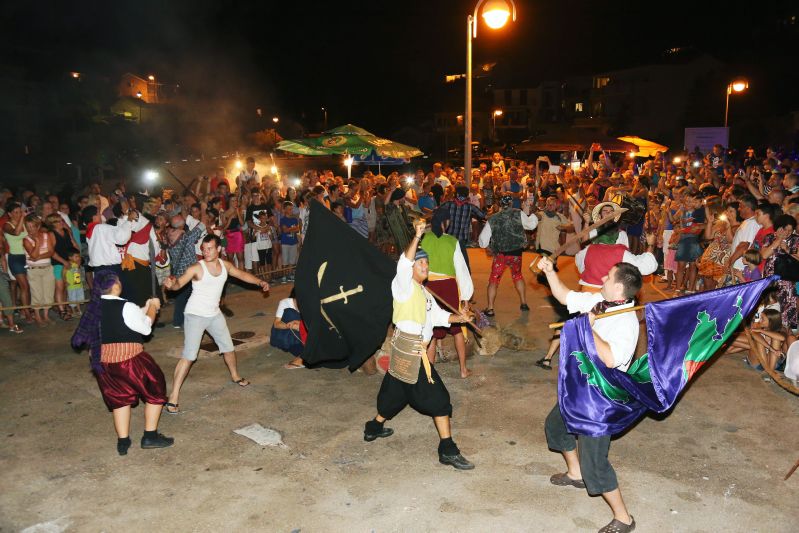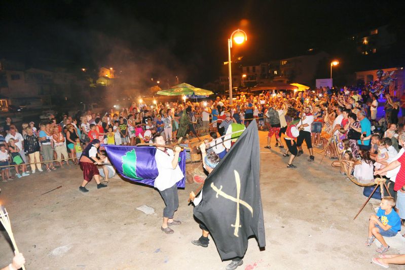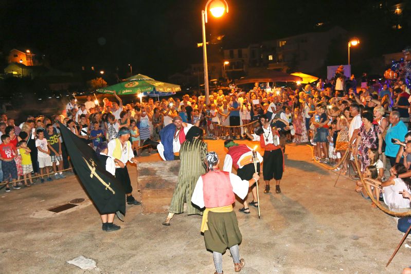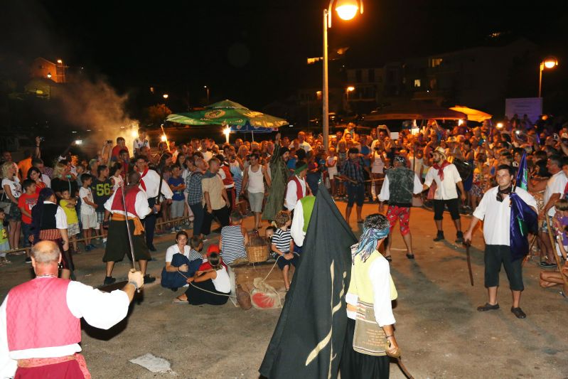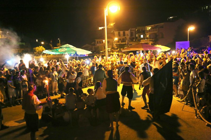 Predivna klapska pjesma klape Kumpanji, atrakcija večeri – napad gusara na Gršćicu i potezanje konopa između ekipe gusara napadača i Blaćana branitelja bili su odličan razlog za opuštenu atmosferu, dobar provod i ugodnu zabavu brojnih okupljenih posjetitelja, domaćih i stranih gostiju.