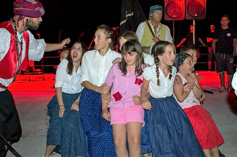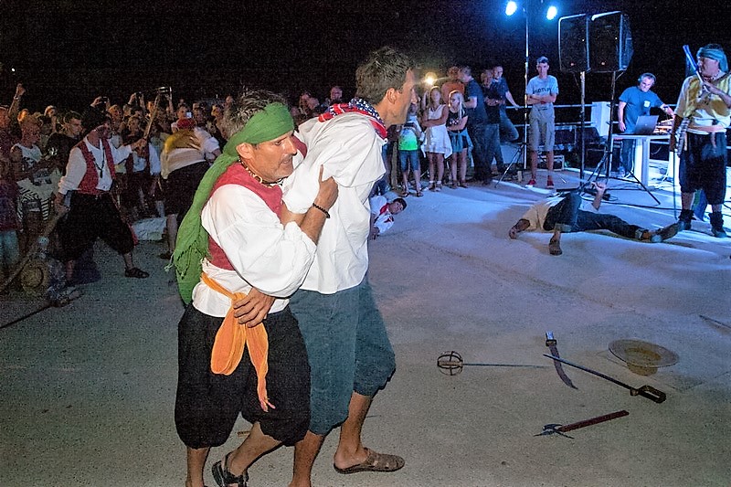 U glazbenom dijelu večeri mnogobrojni posjetitelji uživali su u klapskoj pjesmi u izvedbi klape Kumpanji, dok su se u zabavnom dijelu večeri u ugodnoj i opuštenoj atmosferi posjetitelji zabavljali uz prikaz gusarskog napada i obranu Karbuna koji su scenski uprizorili mještani Karbuna i njihovi prijatelji iz naših drugih turističkih uvala, a nešto kasnije su i odmjerili snage u potezanju konopa sa dvije formirane ekipe – ekipa Gusari i ekipa Blaćani.