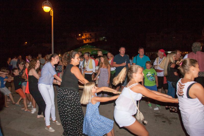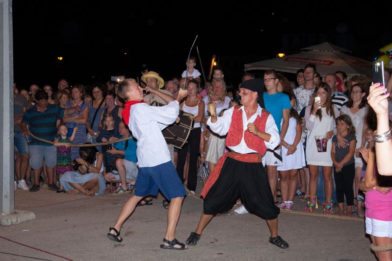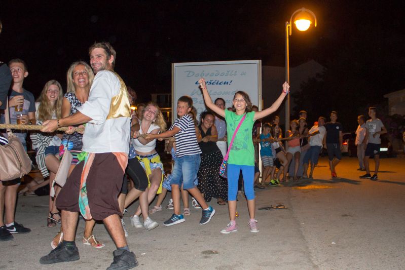 U glazbenom dijelu večeri posjetitelji su mogli uživati u cjelovečernoj klapskoj izvedbi poznatih pjesama sa bogatog repertoara klape Kumpanji, dok su se u zabavnom dijelu večeri u dinamičnoj i izuzetno opuštenoj atmosferi posjetitelji zabavljali uz prikaz gusarskog napada i obranu Gršćice koji su scenski uprizorili članovi KUD Petar Milat iz Blata, a nešto kasnije mogli su gledati i potezanje konopa sa dvije formirane ekipe – ekipa Gusari te ekipa Blaćani kojima su se ubrzo priključile i dvije ženske ekipe natjecateljica.