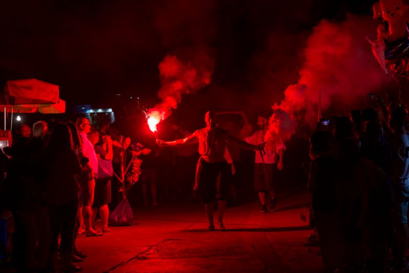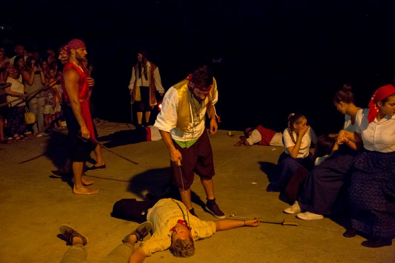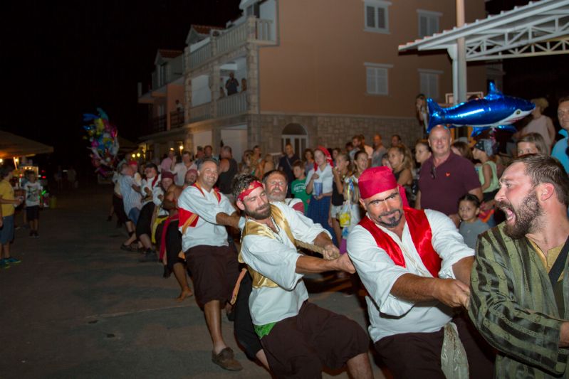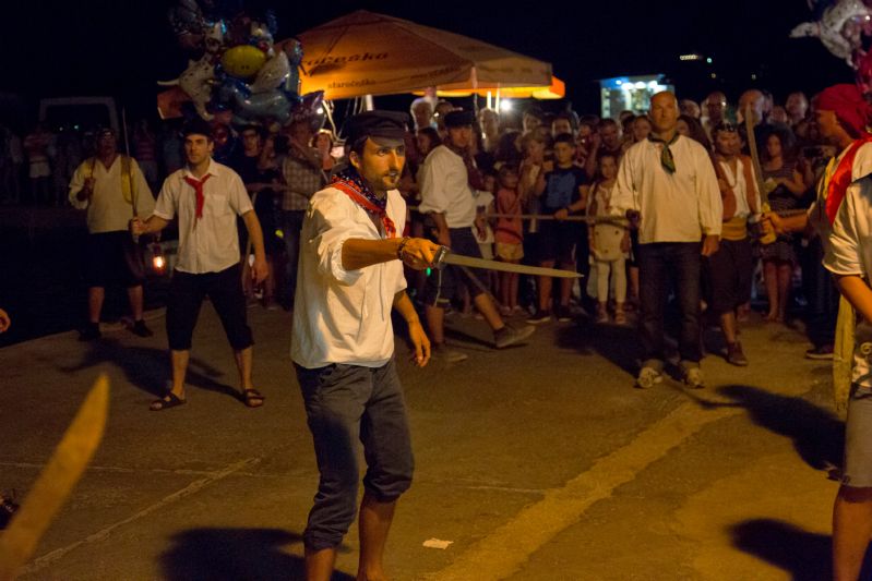 Mnogobrojni domaći i strani posjetitelji proveli su ugodnu zabavno-glazbenu večer uz predivnu pjesmu klape Kumpanji i spektakularni napad gusara na Prižbu koji su uprizorili članovi KUD Petar Milat. U nastavku večeri ekipa Gusari i ekipa Blaćani odmjerila je snage i u potezanju konopa.