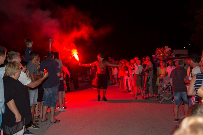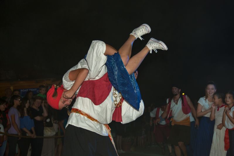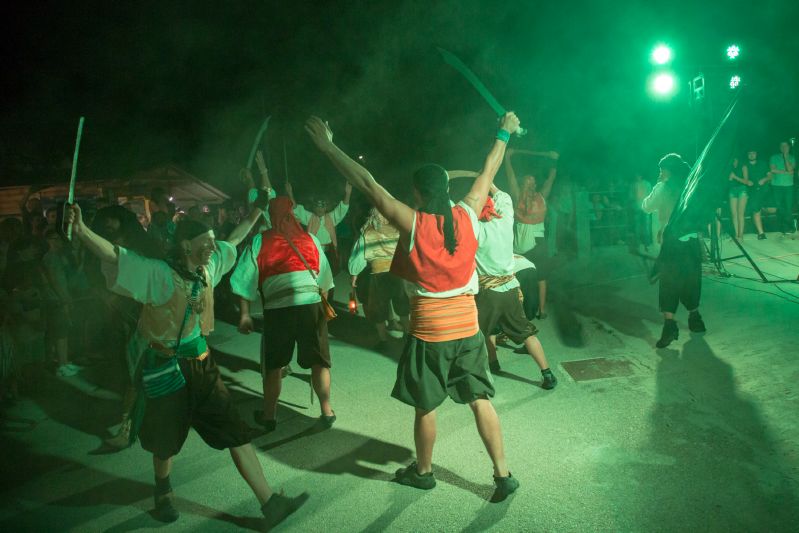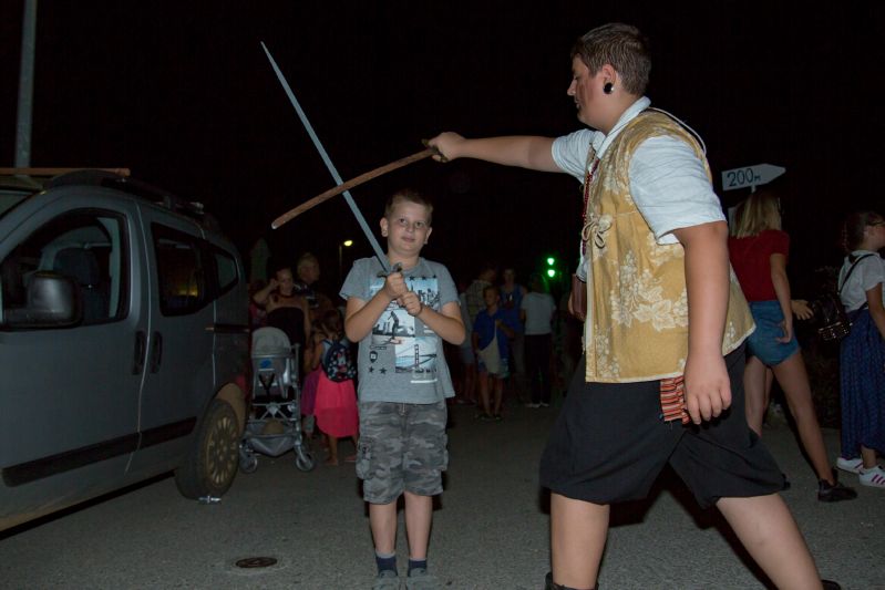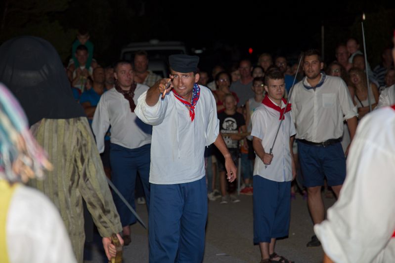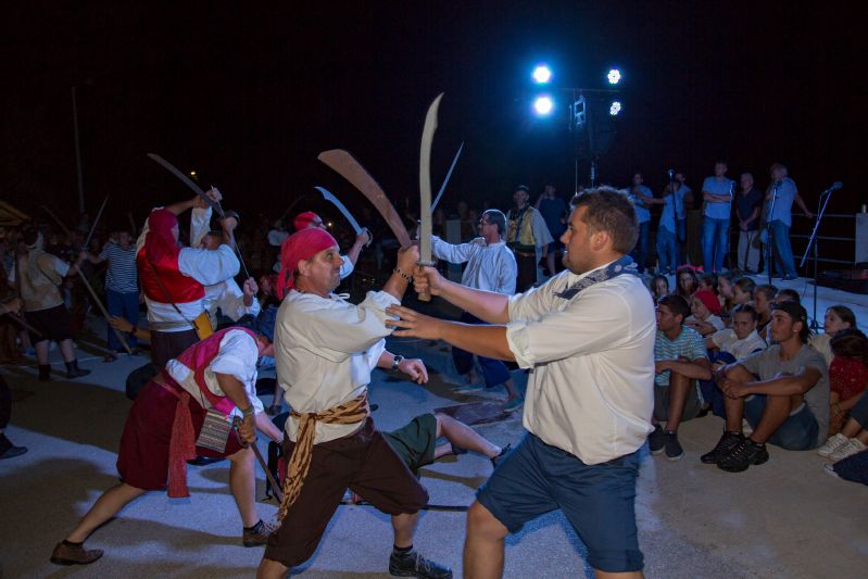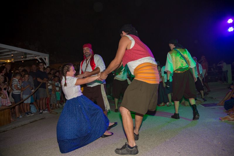 Nešto kasnije, u zabavnom dijelu ove večeri posjetitelji su mogli uživati u spektakularnom napadu gusara na uvalu koje su pripremili članovi HGSU Petar Milat iz Blata.