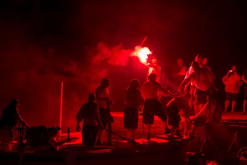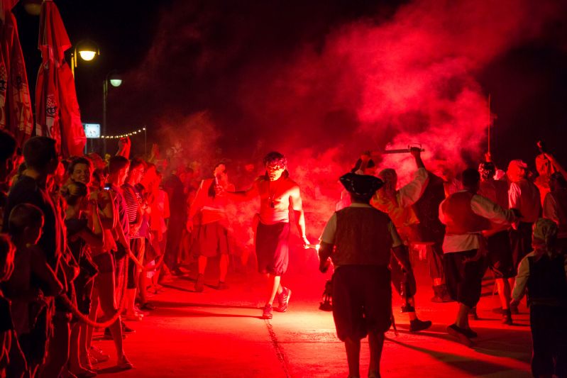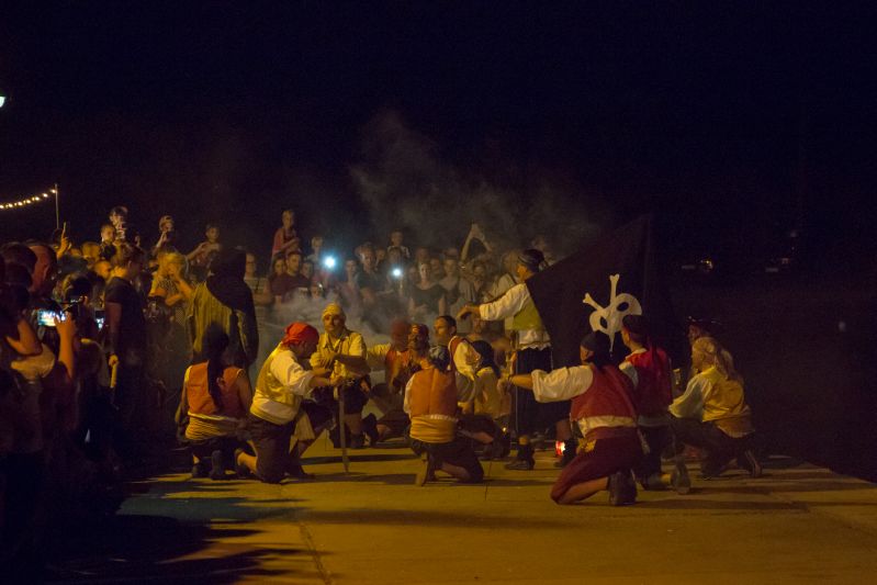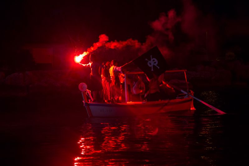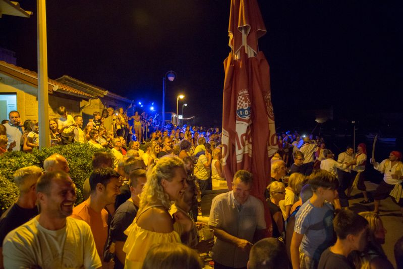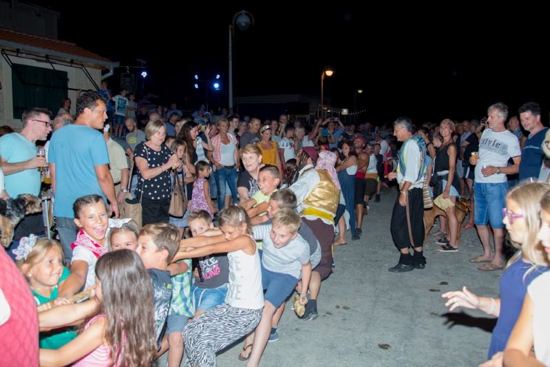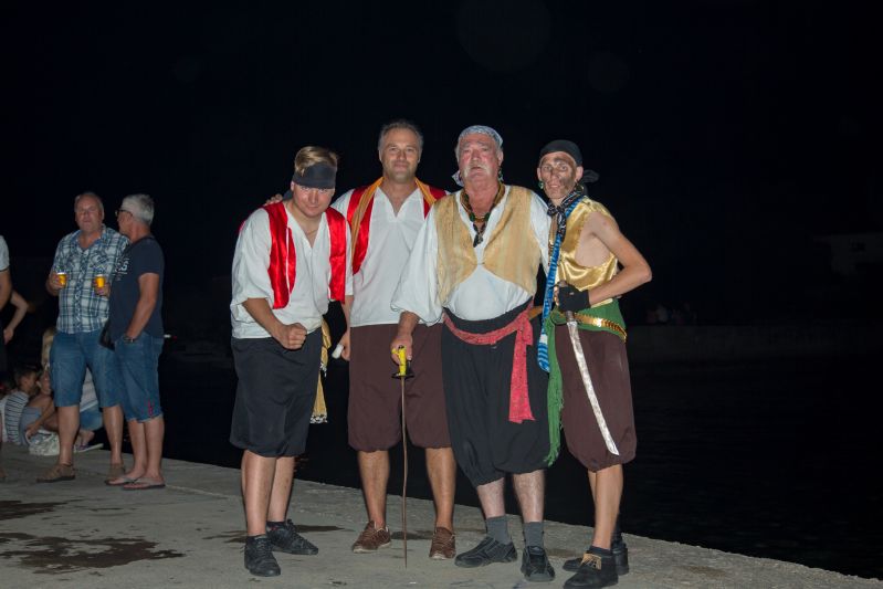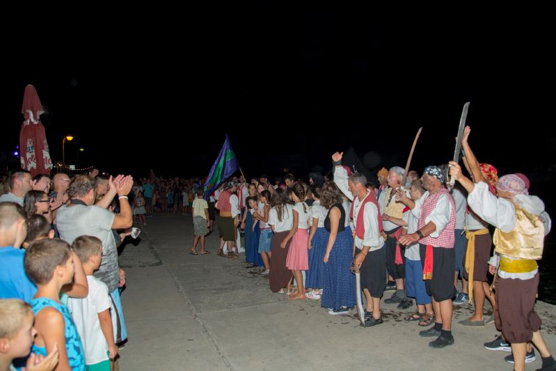Nešto kasnije, u zabavnom dijelu ove večeri posjetitelji su mogli uživati u spektakularnom napadu gusara na uvalu koje su pripremili članovi HGSU Petar Milat iz Blata.
