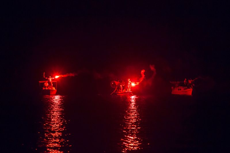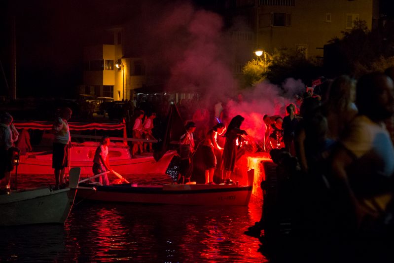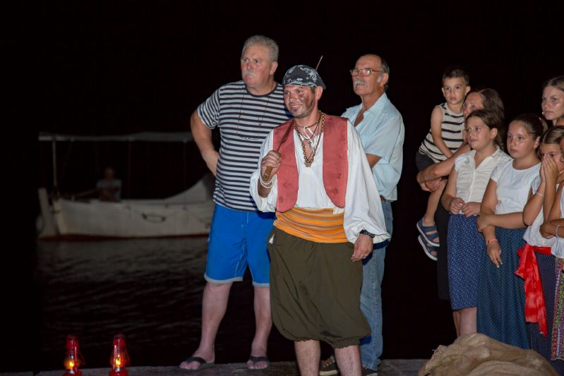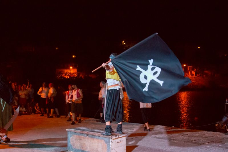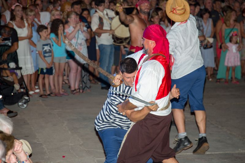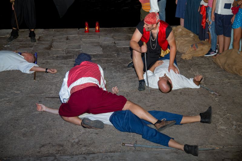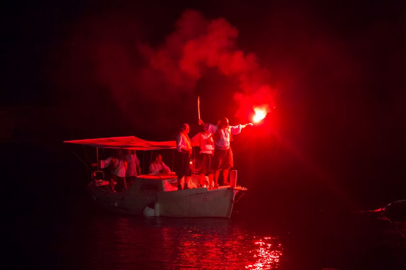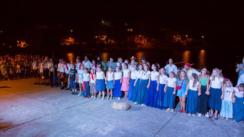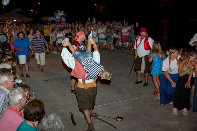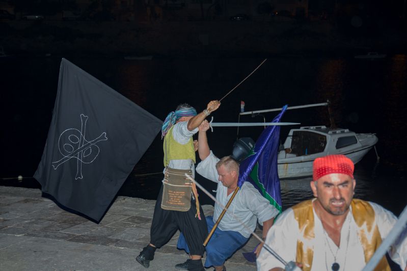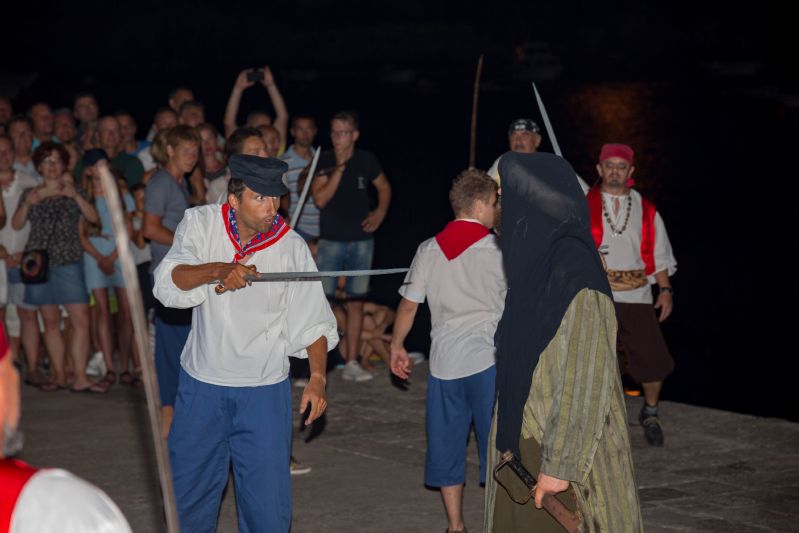 Nešto kasnije, u zabavnom dijelu ove večeri posjetitelji su mogli uživati u spektakularnom napadu gusara na uvalu koje su pripremili članovi HGSU Petar Milat iz Blata.