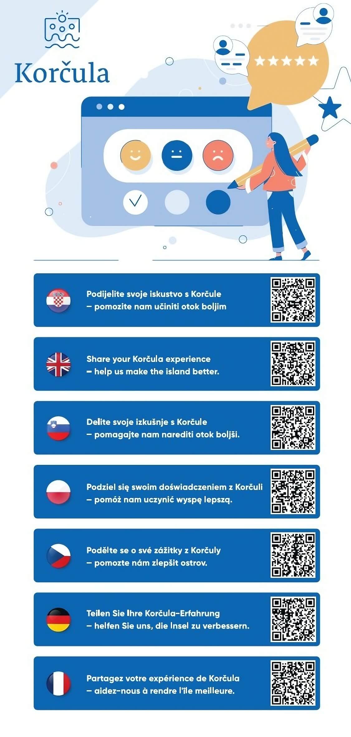kako bismo otok Korčulu učinili još ljepšim i ugodnijim za sve posjetitelje, pozivamo vas da s nama podijelite dojmove o svom boravku. Trebat će vam samo nekoliko minuta – kliknite na poveznicu i ispunite anketu.