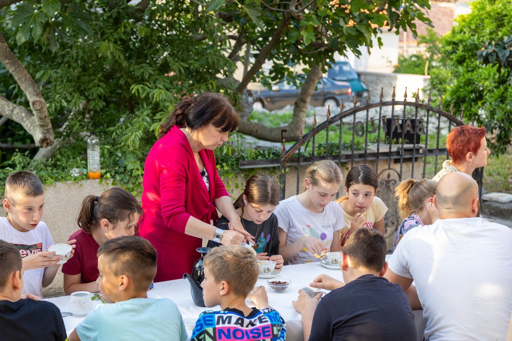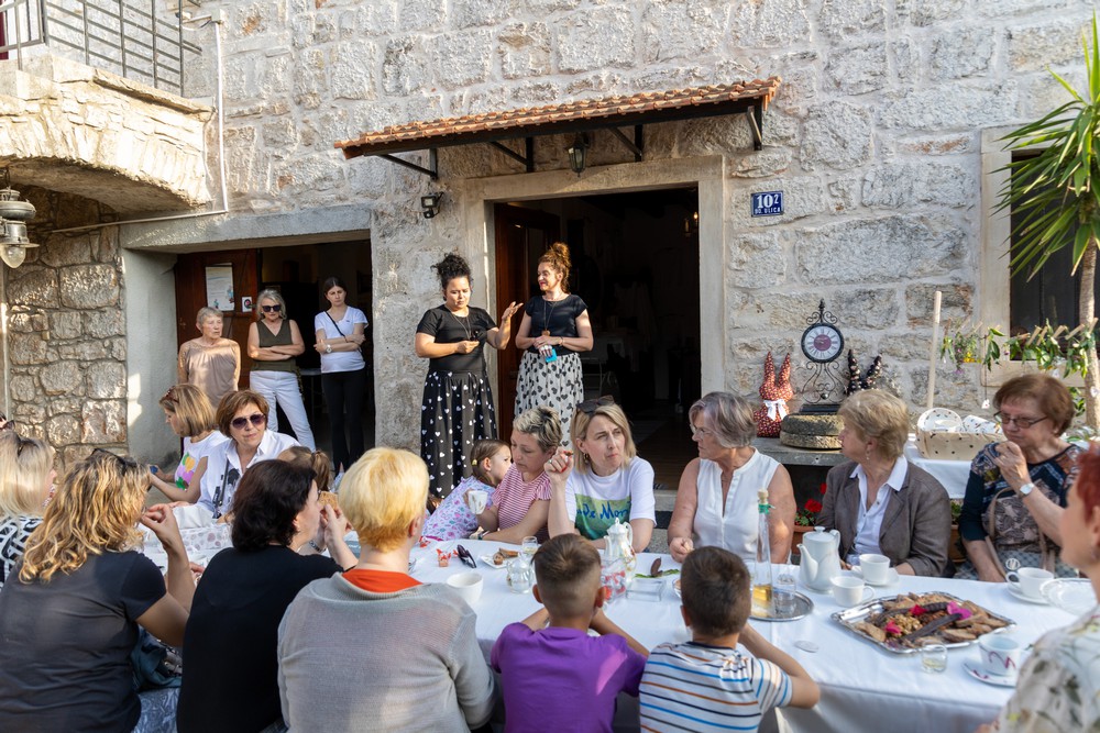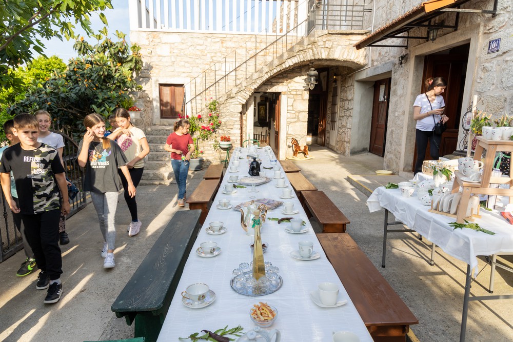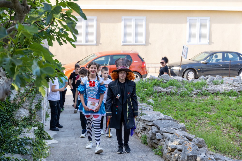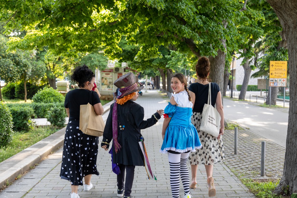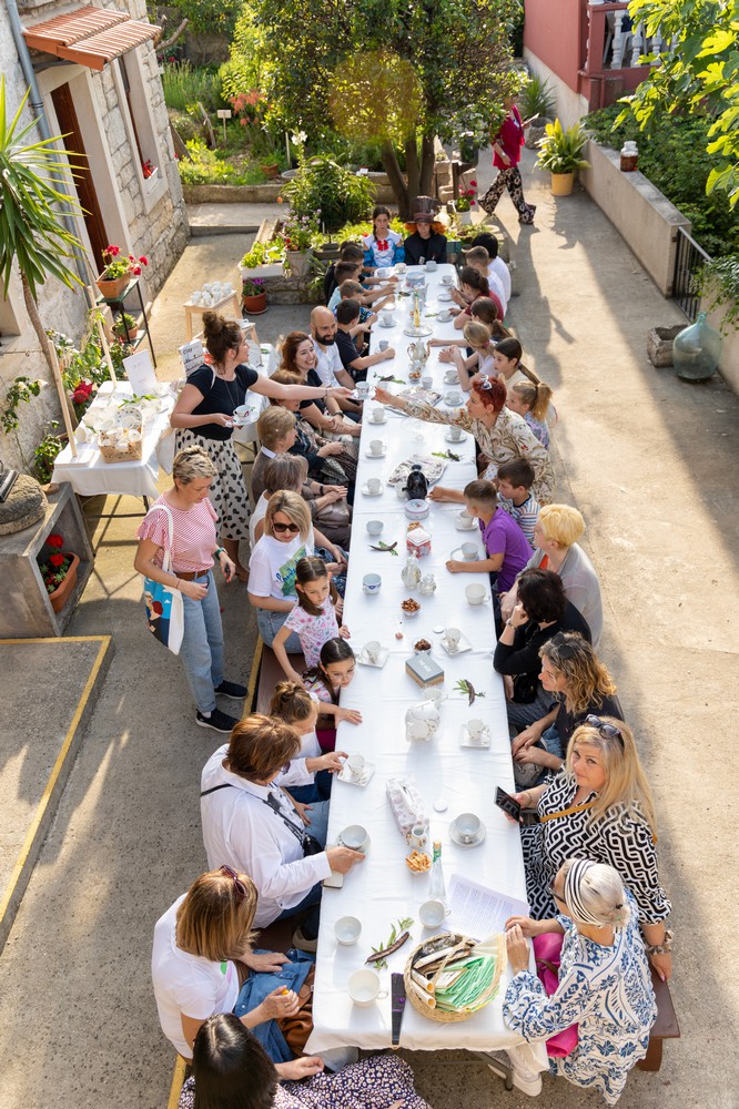 Okupljanje je kao i uvijek bilo u Gradskom parku Blato otkuda je krenula storytelling šetnja sa Alisom i Klobučarom do etno kuće Barilo gdje se održao kružok uz šalicu čaja i predstavljanje šalica Dainesi, ručno rađenih i jedinstvenih šalica dizajniranih i napravljenih na otoku, a sve to uz priču o književnosti, ljekovitom bilju i šalicama.