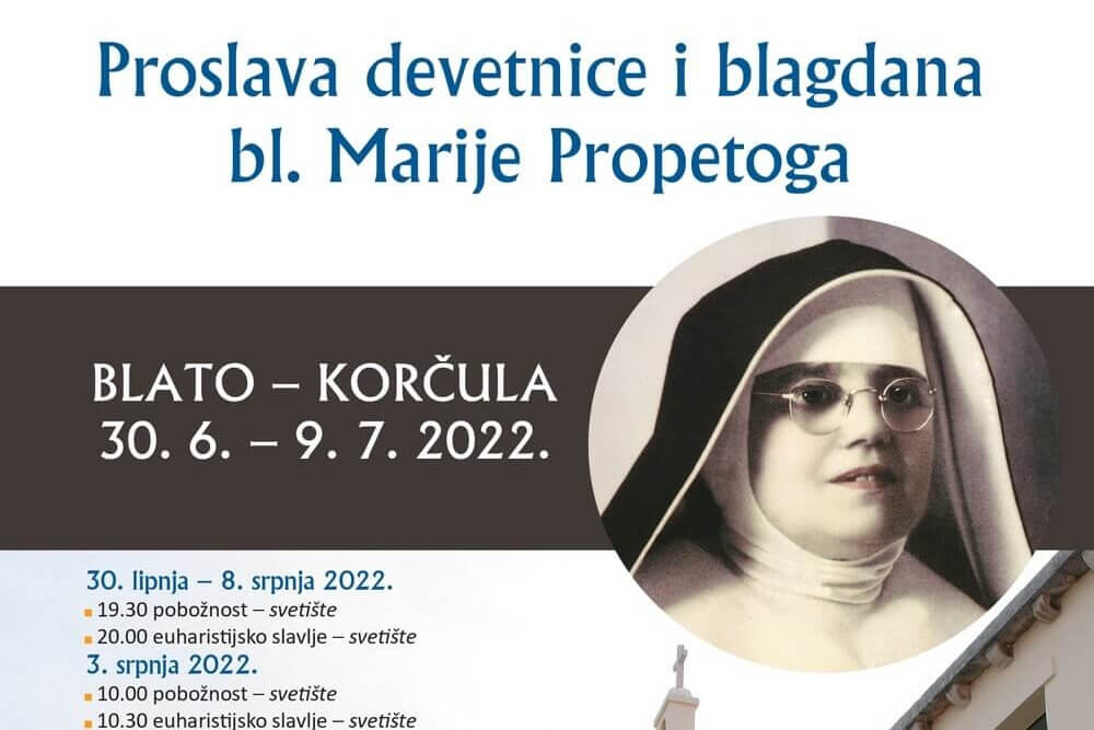 Blagdan će se bl. Marije Propetoga svečano proslaviti u njezinu rodnom mjestu Blatu na Korčuli 9. srpnja 2022. godine...
