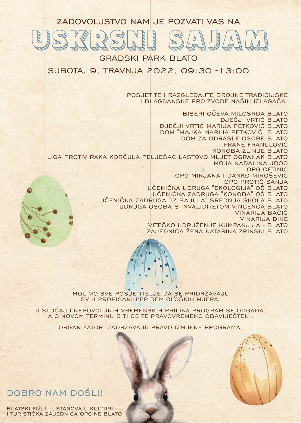 Zadovoljstvo nam je pozvati vas na Uskrsni sajam u Blatu