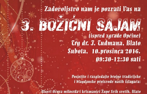 Obaviještavamo Vas da Turistička zajednica općine Blato i ove godine planira organizirati Božićni sajam.